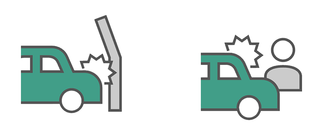 ただし自賠責保険はあくまで他人を死傷させた場合の最低限の補償であり、保険金額についても、死亡3,000万円、後遺障害4,000万円、傷害120万円(いずれも被害者1名あたりの最高金額)と、限度額が決められています。また、他人の財物(車・モノ)に損害を与えた場合や、ご自身については補償されません。